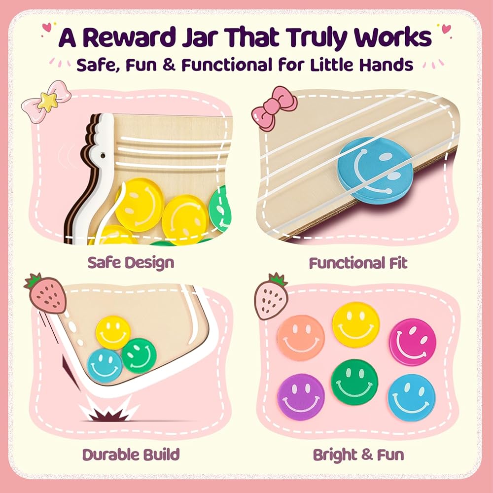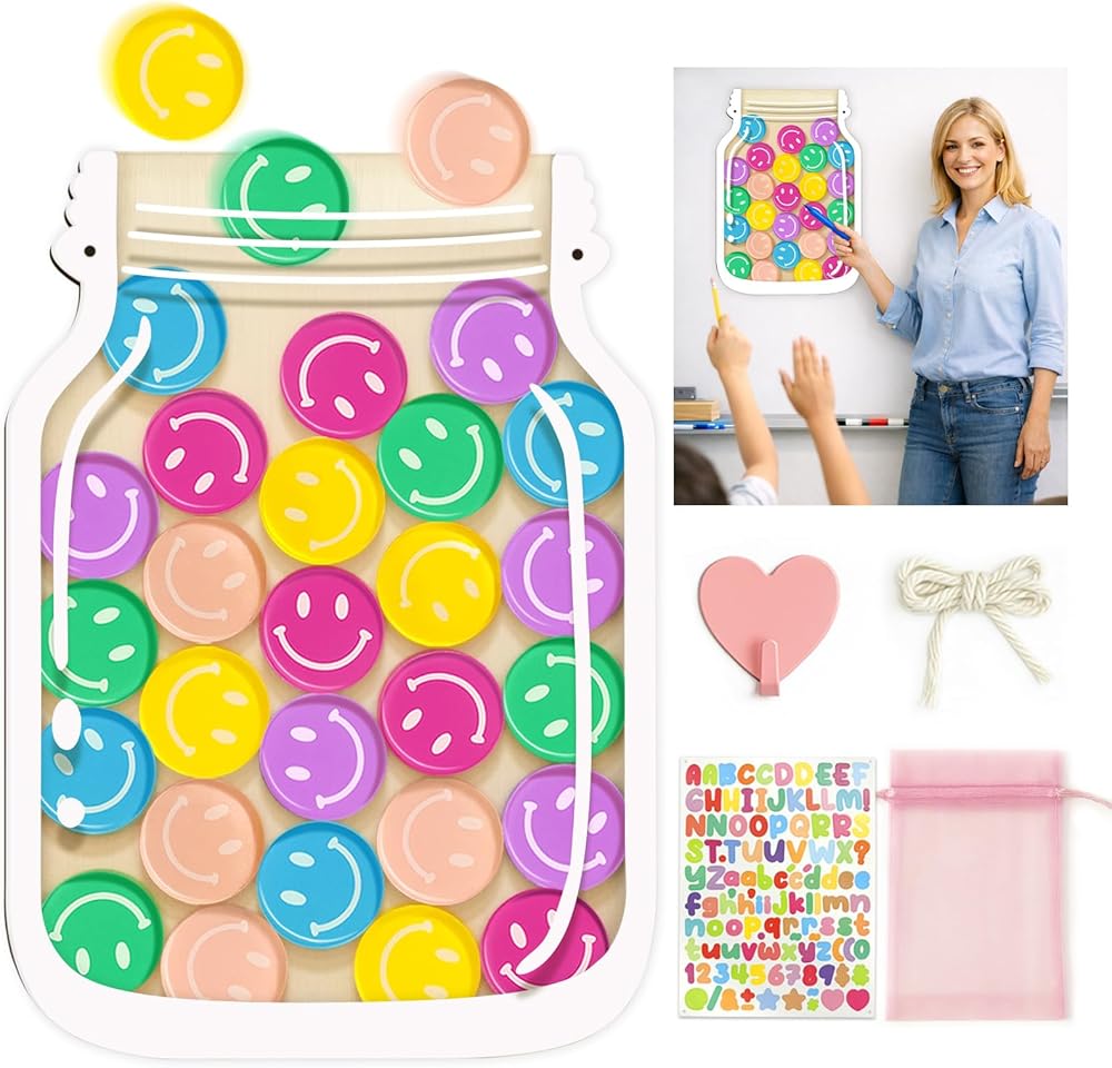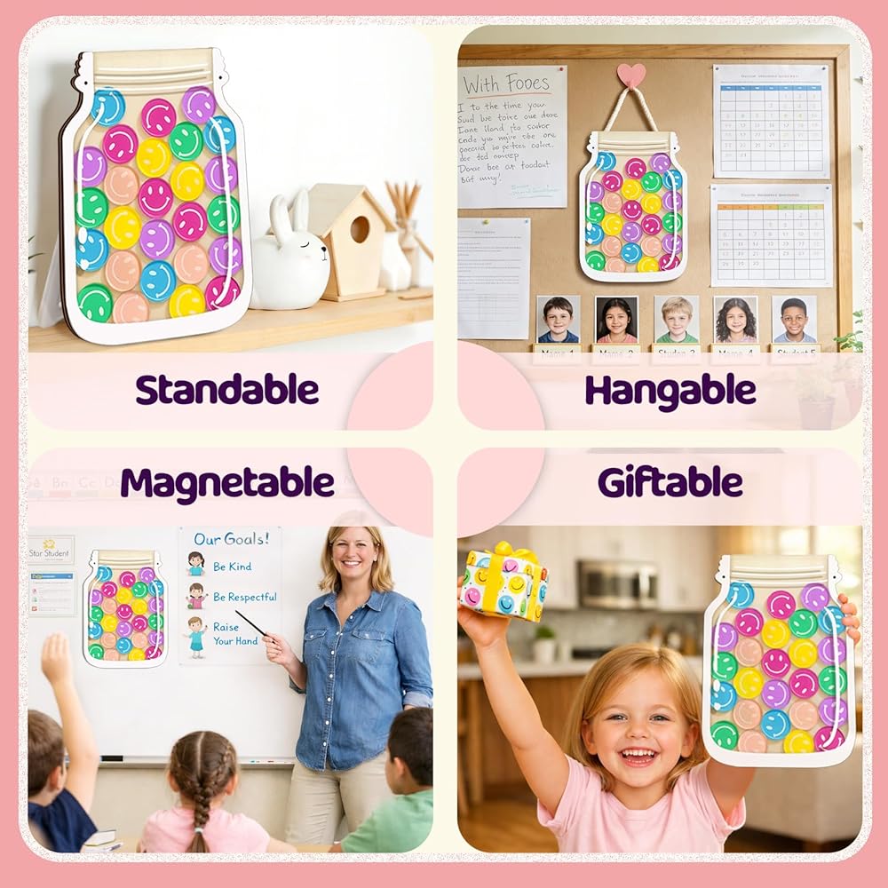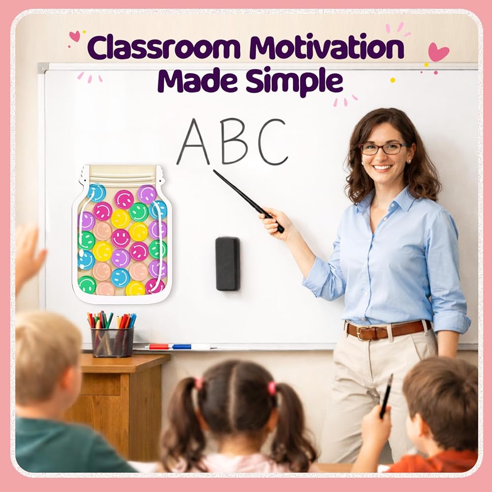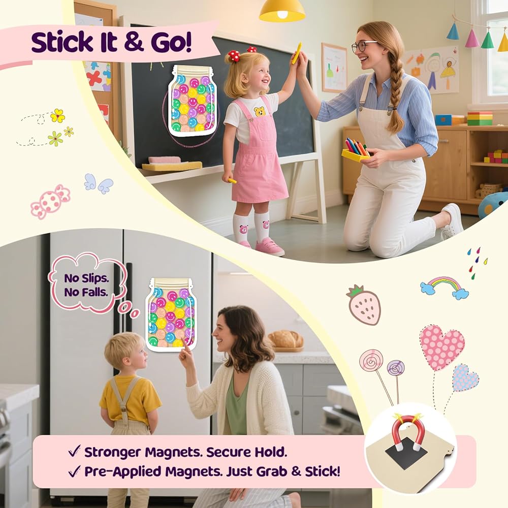 وعاء مكافآت الفصل الدراسي المغناطيسي، وعاء مكافآت كبير مقاس 27.94 سم مع 30 رمزًا مبتسمًا، نظام مكافآت التعزيز الإيجابي للمعلمين والأطفال