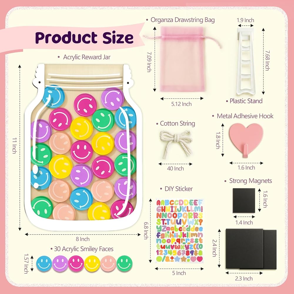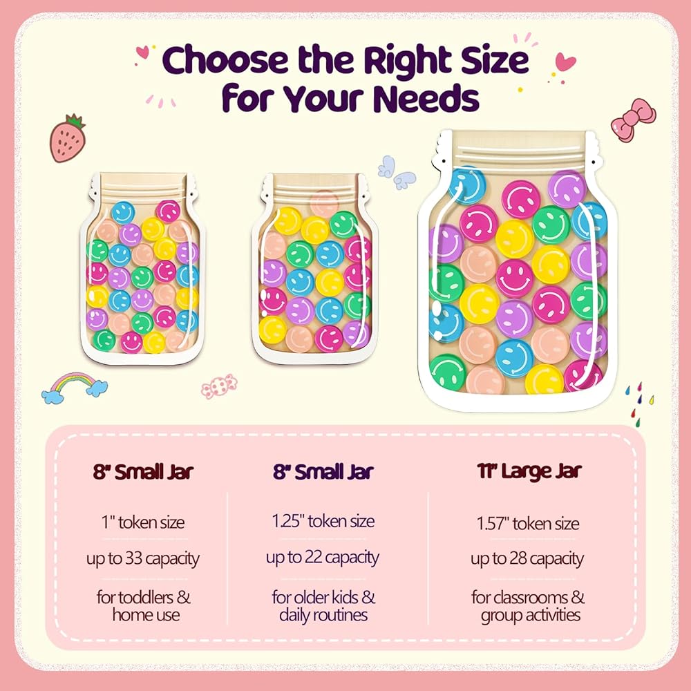 • ينمو مع طلابك (وطفلك): استخدمه لتحقيق أهداف السلوك في الفصل الدراسي أو المشاركة أو تحديات القراءة أو الواجبات المنزلية أو الأعمال المنزلية أو التدريب على استخدام الحمام في المنزل. تعتبر الجرة الكبيرة مقاس 11 بوصة و30 رمزًا كبيرًا رائعة للأهداف طويلة المدى - وهو نظام واحد بسيط يعمل عبر الروتين والأعمار