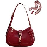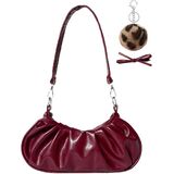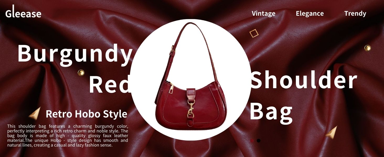 【Retro Hobo Style】This shoulder bag features a charming burgundy color, perfectly interpreting a rich retro charm and noble style. The bag body is made of high - quality glossy faux leather material. The delicate luster and smooth touch highlight its extraordinary quality. The unique Hobo - style design has smooth and natural lines, creating a casual and lazy fashion sense.