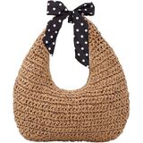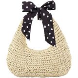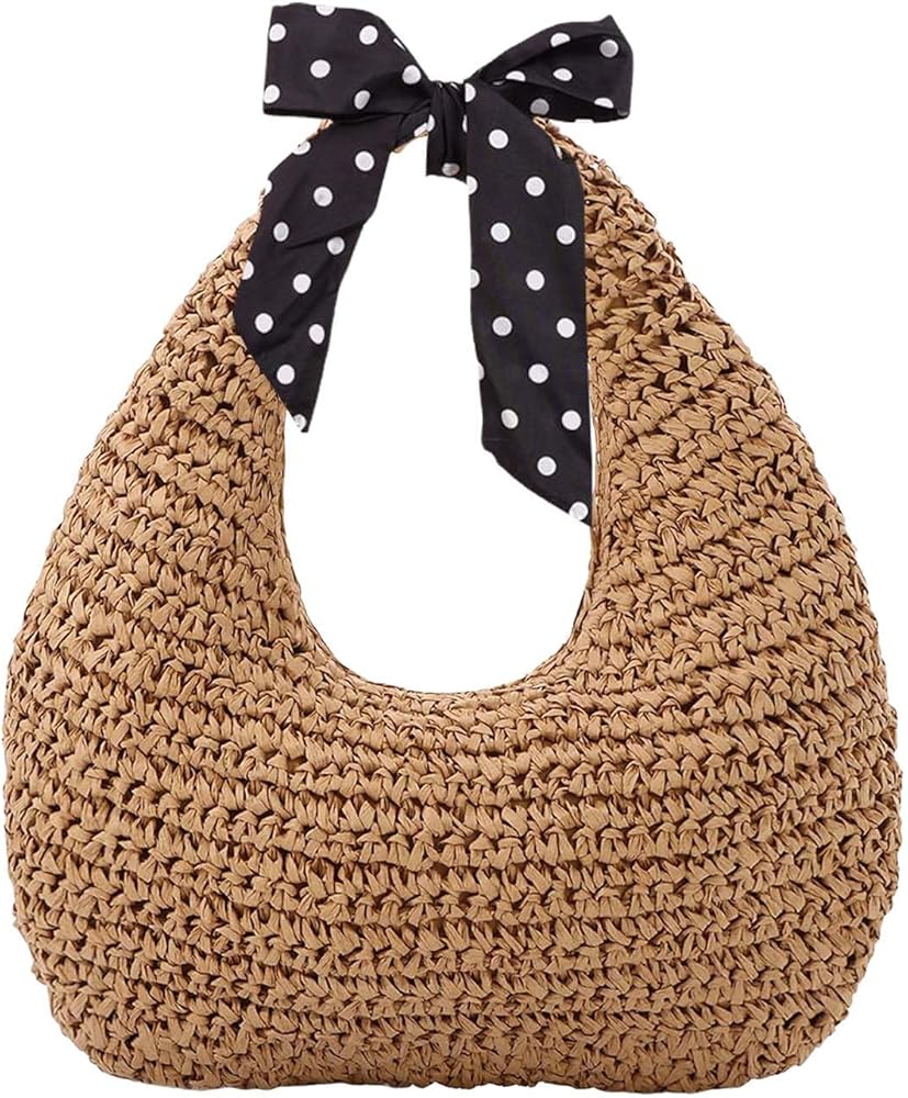 [تصميم أنيق فريد]: تتميز بشكل منظم نصف قمر، ومقابض دائرية وشريط أنيق منقط، حقيبة اليد المنسوجة هذه هي إكسسوار مثالي للنساء يضيف لمسة من الأنماط إلى مظهرك في الربيع والصيف.