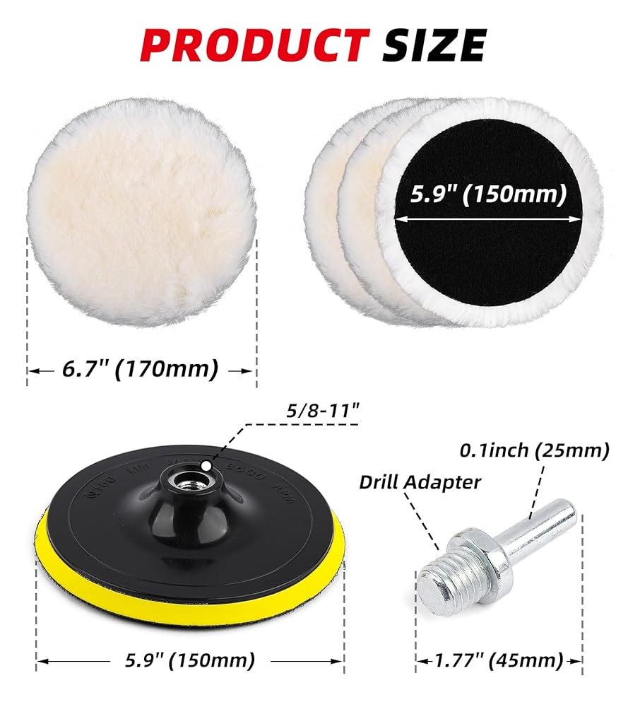 - مجموعة متعددة الاستخدامات: احصل على 6 وسادات تلميع صوف (قطرها 6 بوصات) بالإضافة إلى محول مثقاب M14 لمهام التلميع والتلميع المريحة.