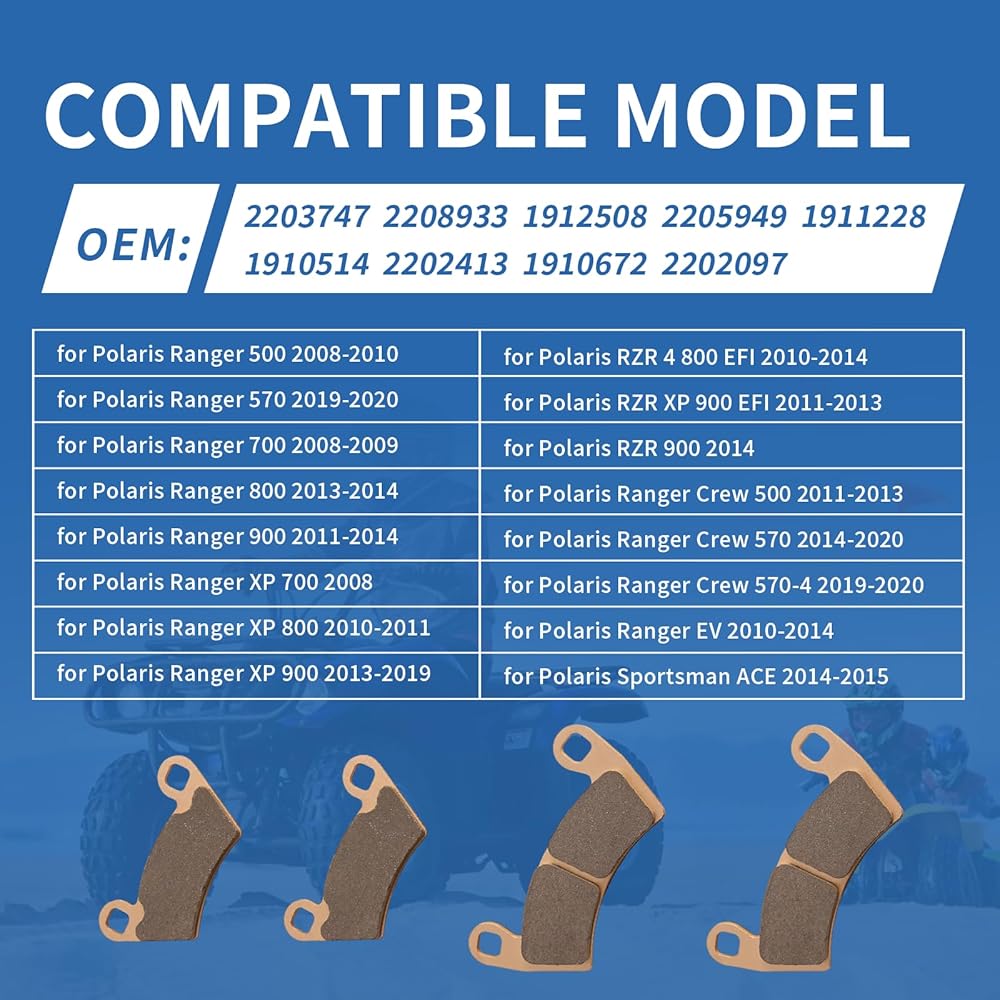 【تركيب السيارة】 مجموعة وسائد الفرامل متوافقة مع Polaris Ranger 500/Ranger 570/Ranger 700/Ranger 800/Ranger 900/Ranger XP 700/Ranger XP 800/Ranger XP 900/RZR 4 800 EFI/RZR XP 900 EFI/RZR 900/Ranger Crew 500/Ranger الطاقم 570/الطاقم الحارس 570-4/الحارس EV/الرياضي ACE