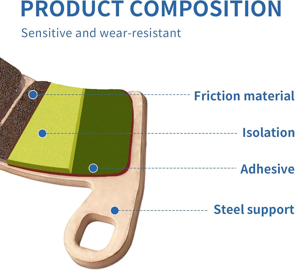 【مقاومة طويلة الأمد للتآكل】 يوفر المركب المعدني المتقدم متانة ممتازة وعمر خدمة ممتد، مما يقلل الحاجة إلى الاستبدال المتكرر حتى في ظل الركوب العنيف أو الأحمال الثقيلة.