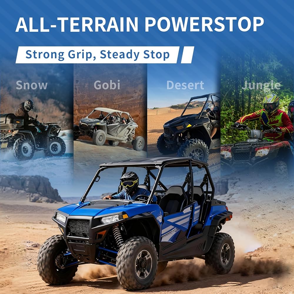 【قوة الكبح لجميع التضاريس 】 تم تصميمها للحفاظ على الكبح المستمر على الطين والرمل والماء والممرات الصخرية والثلج، مما يضمن قوة توقف ثابتة سواء كنت تركب على الطريق، أو تعمل في المزرعة، أو تتعامل مع التضاريس الوعرة القاسية.