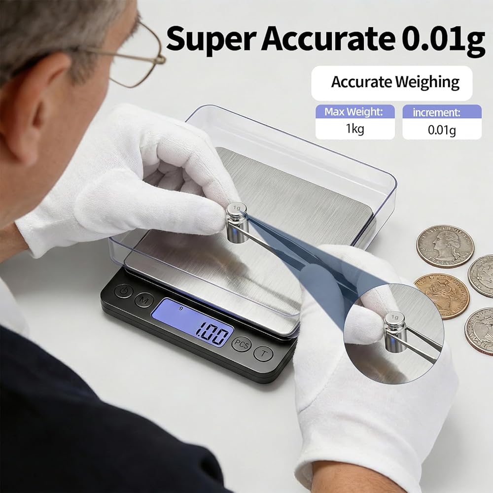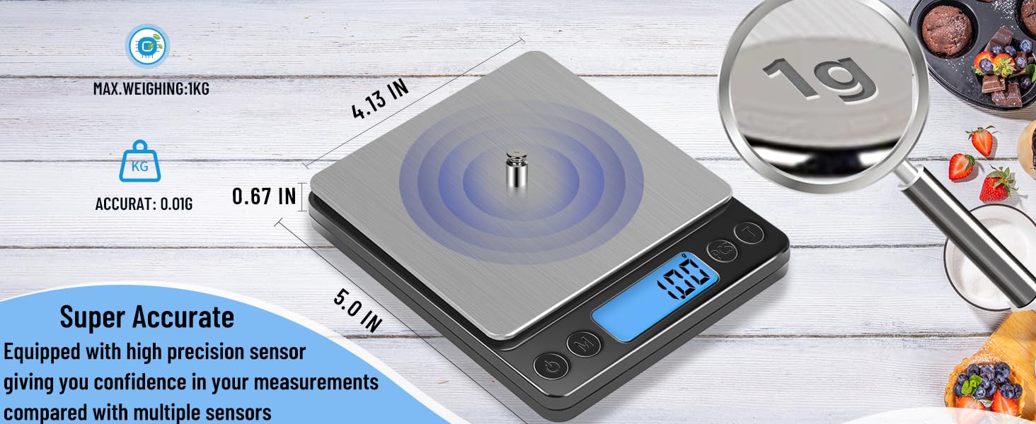 【نتائج دقيقة】- مقياس SKEAP 1 كجم / 0.01 جرام يحدد أحدث تقنيات الوزن الدقيقة مع نطاق قياس 0.03 جرام - 1000 جرام مع زيادة 0.01 جرام / 0.001 أونصة. الطاقة: الشحن والبطاريات (كابل USB والبطاريات متضمنة).