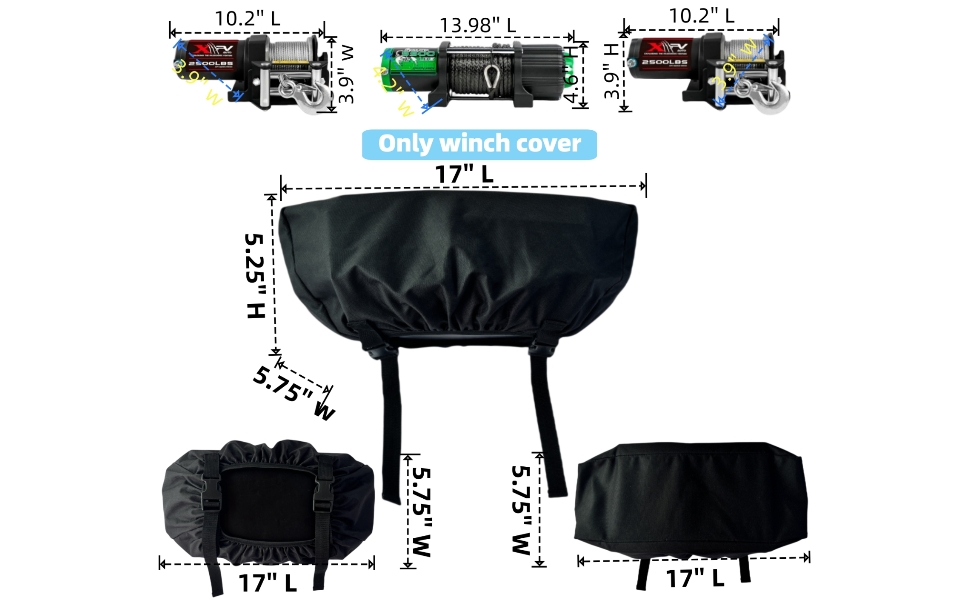 【مصمم خصيصًا لتعزيز التغطية】قياس 17 بوصة × 5.75 بوصة × 5.25 بوصة، تم تصميم غطاء الرافعة الصغير هذا ليتناسب مع ملفات الرافعة الصغيرة، مما يوفر ملاءمة أفضل وتغطية كاملة - مما يضمن بقاء الونش الصغير محميًا من العناصر عندما لا يكون قيد الاستخدام.