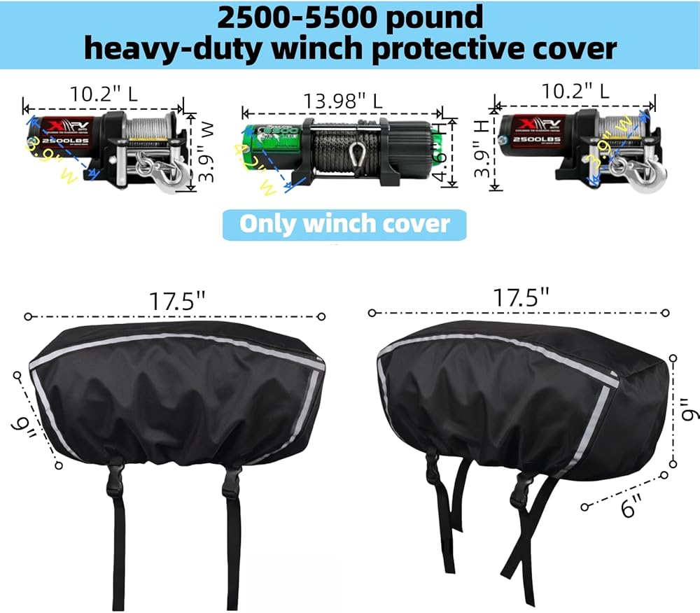 【يناسب معظم الروافع الصغيرة】متوافق مع الروافع الكهربائية التي يتراوح وزنها من 2500 إلى 5500 رطل، وحتى بعض ما يصل إلى 6000 رطل، يعتبر غطاء حماية رافعة المقطورة هذا مثاليًا لنماذج الرافعة المدمجة الشهيرة. يرجى التحقق من حجم وشكل الونش الخاص بك قبل الشراء.