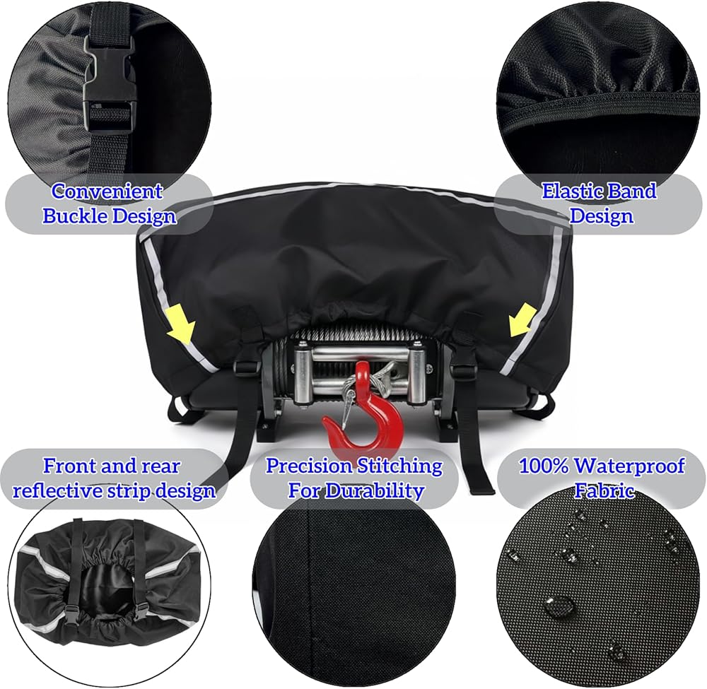 【خدمة ما بعد البيع سهلة التنظيف وموثوقة】يسمح سطح المشمع الناعم بالمسح السريع، مما يحافظ على غطاء الونش الخاص بك نظيفًا ويدوم طويلاً. إذا لم تكن راضيًا عن غطاء الرافعة الخاص بنا، فلا تتردد في الاتصال بنا لحل المشكلة في أي وقت.
