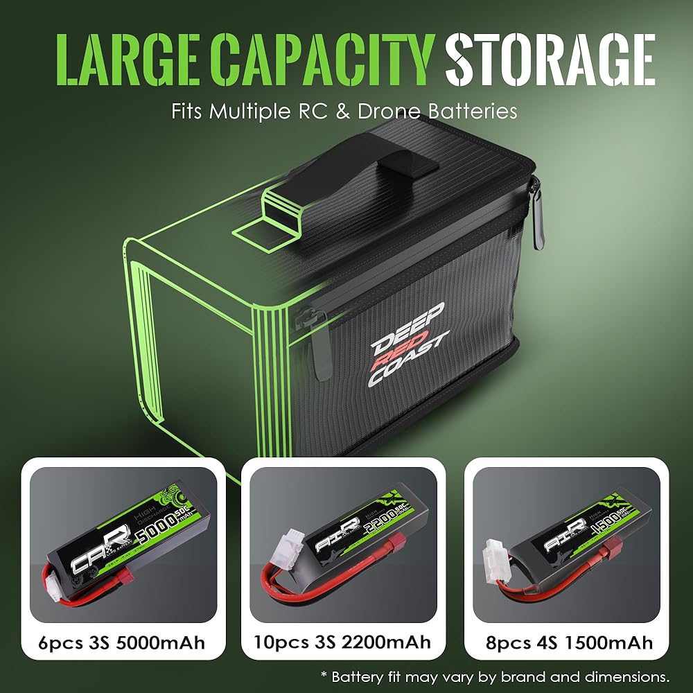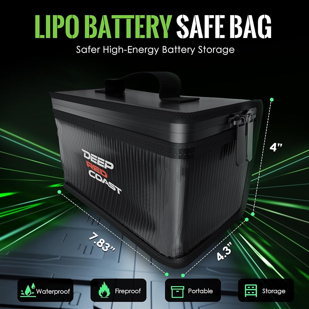 【حجم صغير للاستخدام اليومي】تبلغ حقيبة بطارية ليبو 7.7 × 3.9 × 4.3 بوصة - مثالية لتخزين وشحن عبوات LiPo الشائعة دون أن تأخذ مساحة كبيرة على طاولة العمل الخاصة بك.