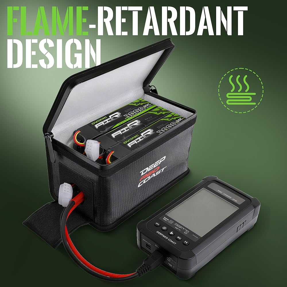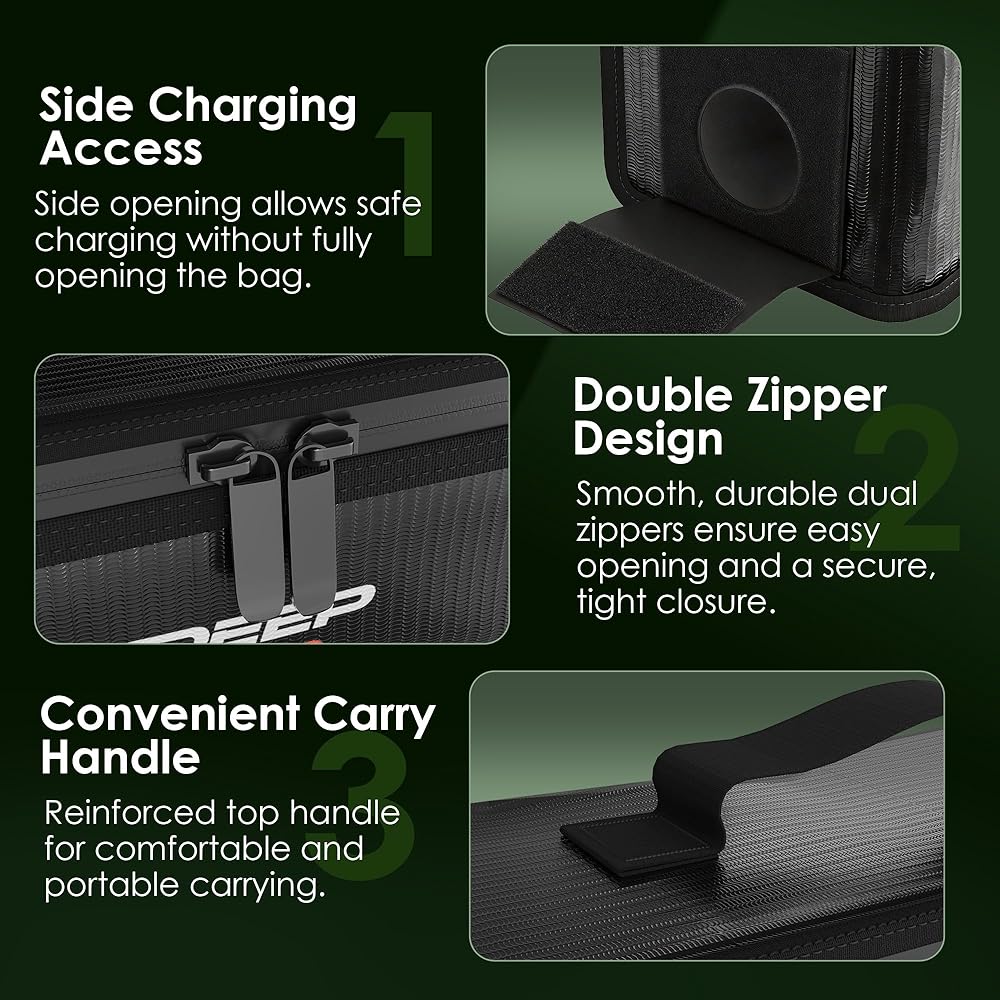 【طبقة داخلية من الألياف الزجاجية المقاومة للحريق】 حقيبة ليبو مصممة بطبقة داخلية مقاومة للهب من الألياف الزجاجية للمساعدة في تقليل انتشار اللهب واحتواء الشرر أثناء شحن بطارية LiPo وتخزينها.