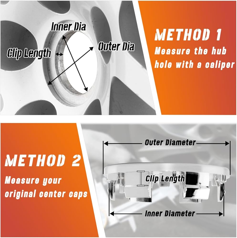 【نصائح】يرجى التحقق من أبعاد غطاء المحور الأصلي وأبعاد فتحة مركز الحافة ومقارنتها بأغطية مركز العجلة الخاصة بنا. (معرف فتحة مركز الحافة = OD لقاعدة الغطاء المركزي، فتحة مركز الحافة OD = أقصى OD لغطاء المركز).