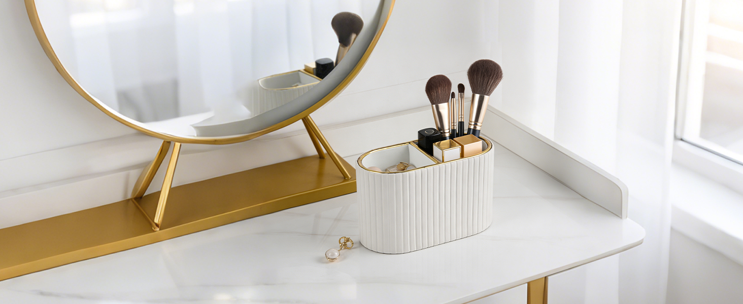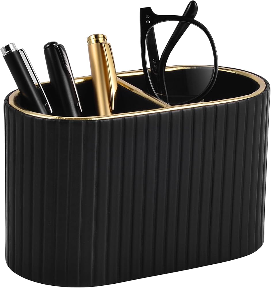 مع ديكور ذو حافة ذهبية وشكل بيضاوي حديث - يتميز بحواف ذهبية مصقولة وصورة ظلية بيضاوية أنيقة، يرفع حامل أكواب القلم هذا جمالية مكتبك بمظهر فاخر وعصري. مثالية للمكاتب، والطاولات الليلية، وطاولات القهوة.