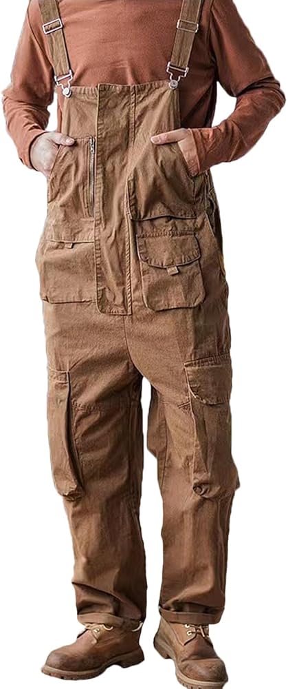 Rexcyril Men's Cotton Bib Overalls Lightweight Loose Fit Coveralls Fashion Jumpsuit