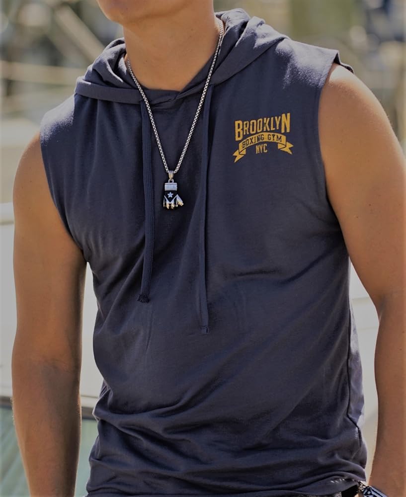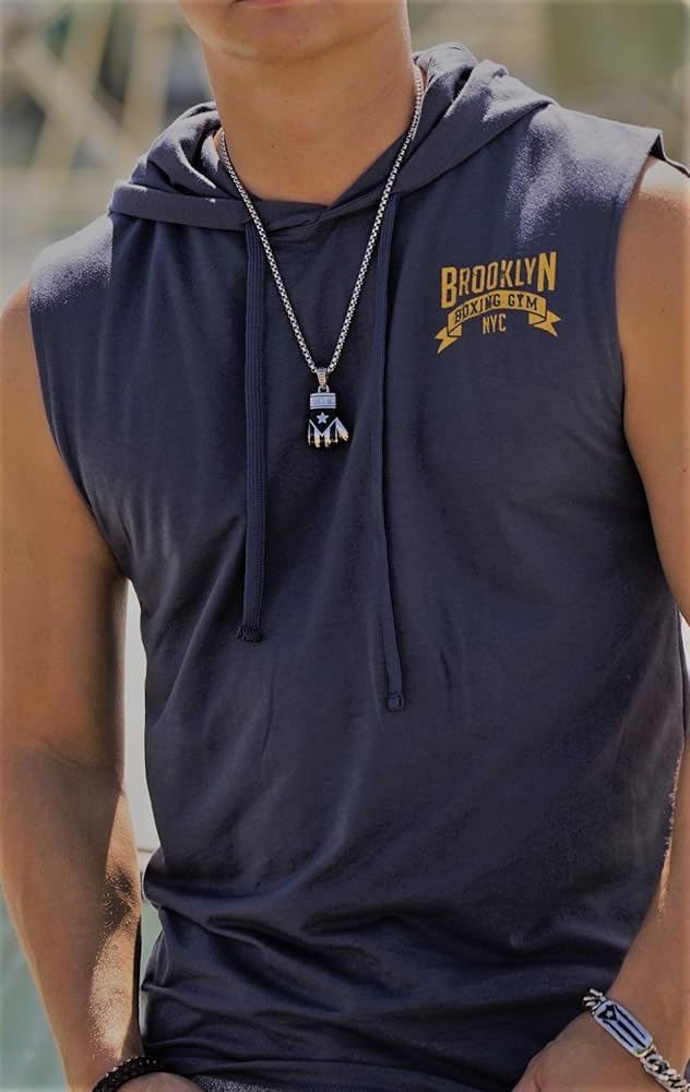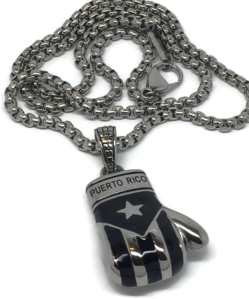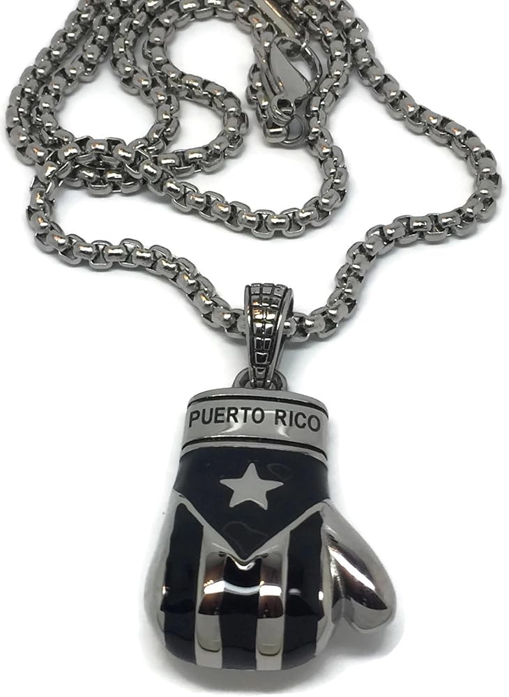 Puerto Rican Boxing Glove (B) Pendant and 24inch Box Chain Set. Pendant: large and bulky, L1.4 x W1.1 inches, Heavy: weight 2.86 oz weight