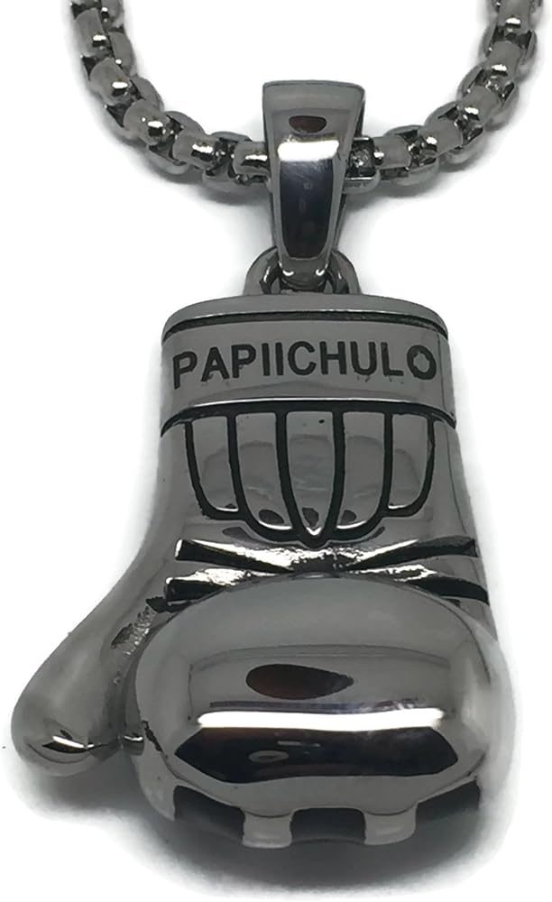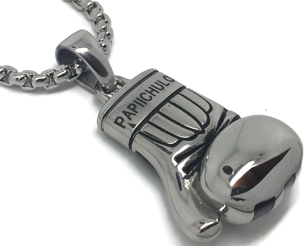 مجموعة قلادة وسلسلة من قفازات الملاكمة البورتوريكية الكبيرة من Papiichulo (أسود وفضي)