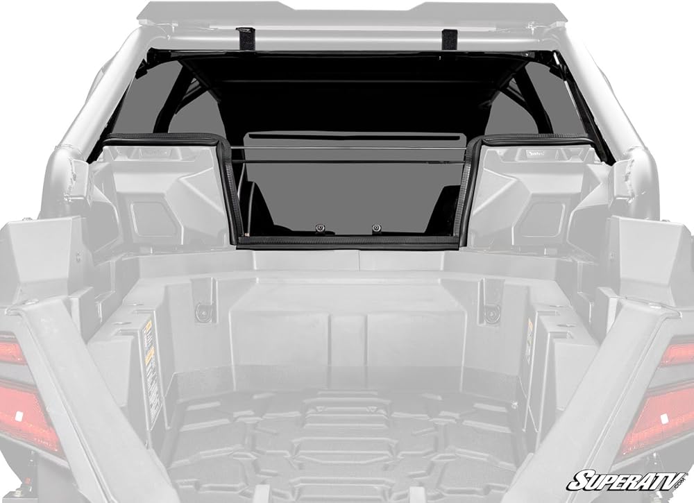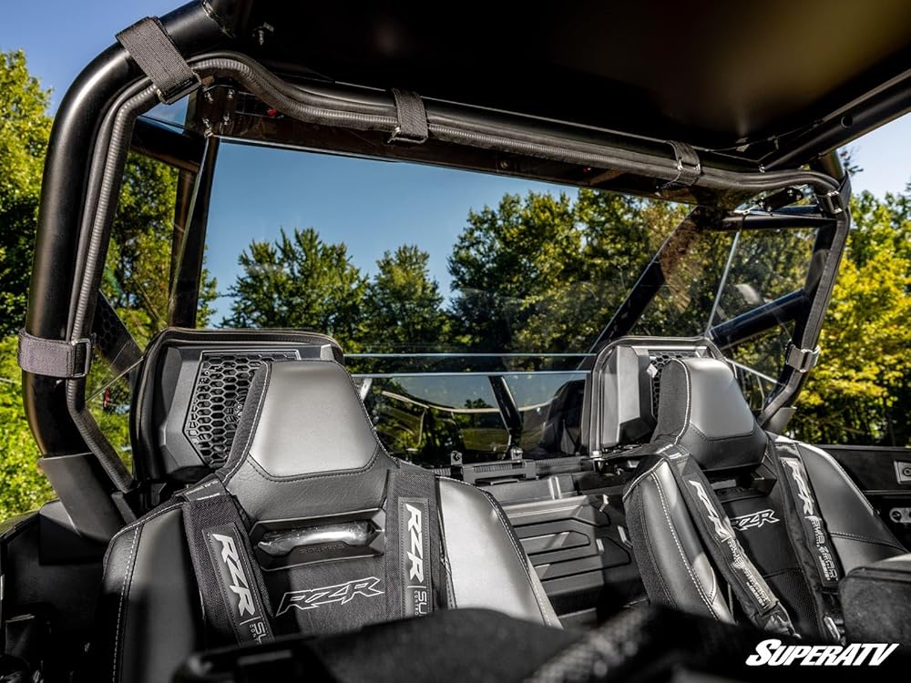Finish Your Cab With a Rear WindshieldFinish your cab and experience better cab comfort with SuperATV's Polaris RZR Pro R Rear Windshield. It gives you year-round protection and stops the dust swirl caused by using a front windshield alone. Plus, it stops you from catching your own rooster tail in your cab. You get comfort, protection, and better rides.Made with Quality PartsWe make a better RZR rear window by using better parts. The included steel brackets and sturdy straps ensure a secure fit. The thick bulb seal keeps out more air and moisture so you stay comfortable. All of it together makes installation as easy as can be.Polycarbonate StrengthAt 250 times the strength of glass, polycarbonate is the strongest windshield material you can get. It's also 25 times more impact resistant than acrylic. And with your choice of clear, light, and dark tints, it protects you from glare just as well as flying rocks.Built On the Back of ExpertiseGo out on the trail and count how many SuperATV windshields you see. You're bound to see a bunch because we've made and sold hundreds of thousands of them. We have more experience than anybody else, so you can count on getting a RZR Pro R rear windshield that fits perfectly and lasts for years.