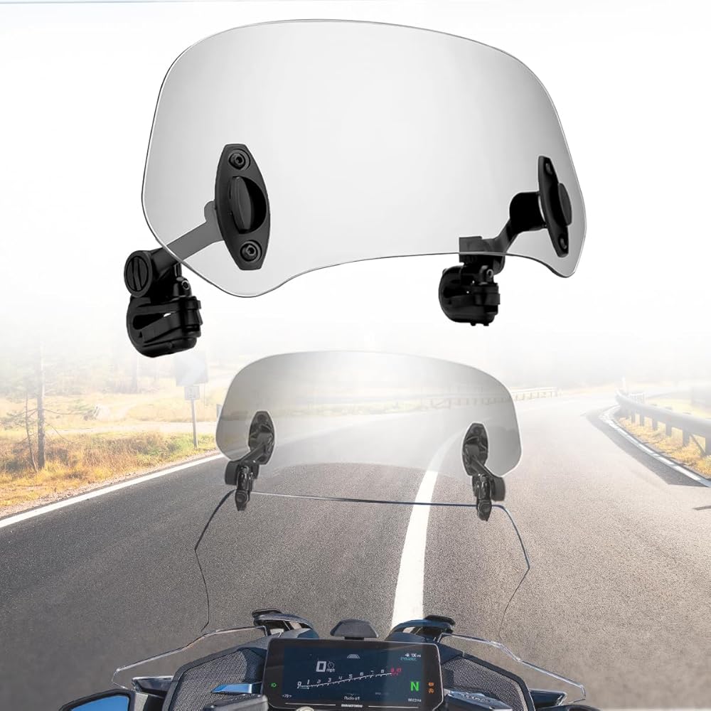 حماية معززة وشفافة - يبلغ مقاس الزجاج الأمامي الطويل للدراجة النارية 28.5 سم (11.2 بوصة)، مصنوع من مادة أكريليك عالية الجودة لانحراف الرياح بشكل فائق ورؤية واضحة عالية الوضوح أثناء الرحلات الطويلة.