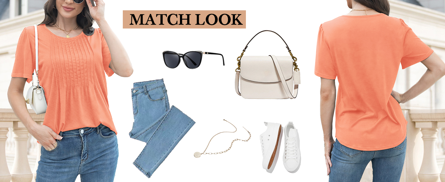 المطابقة: يمكن تنسيق القمصان الصيفية للسيدات مع العديد من أنواع الملابس السفلية المختلفة. يمكنك إقرانها مع الجينز والسراويل الكاجوال والتنانير والمزيد. يمكن تنسيق البلوزات النسائية ذات الأكمام القصيرة مع العديد من الأنماط المختلفة لإظهار أسلوبك