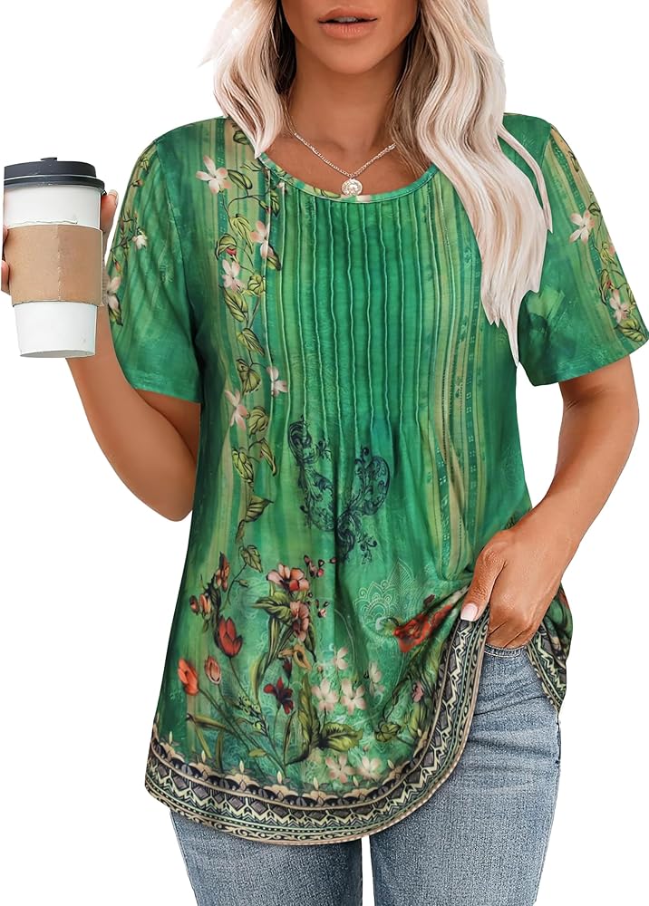 المزايا: تتميز القمصان النسائية بأكمام قصيرة بياقة دائرية ومنطقة الصدر بطيات وحاشية منحنية، مما يضفي لمسة من الأناقة على الملابس. تتميز أكمام القمصان النسائية بتصميم أكمام منتفخة رقيقة تغري الكتفين بشكل فعال