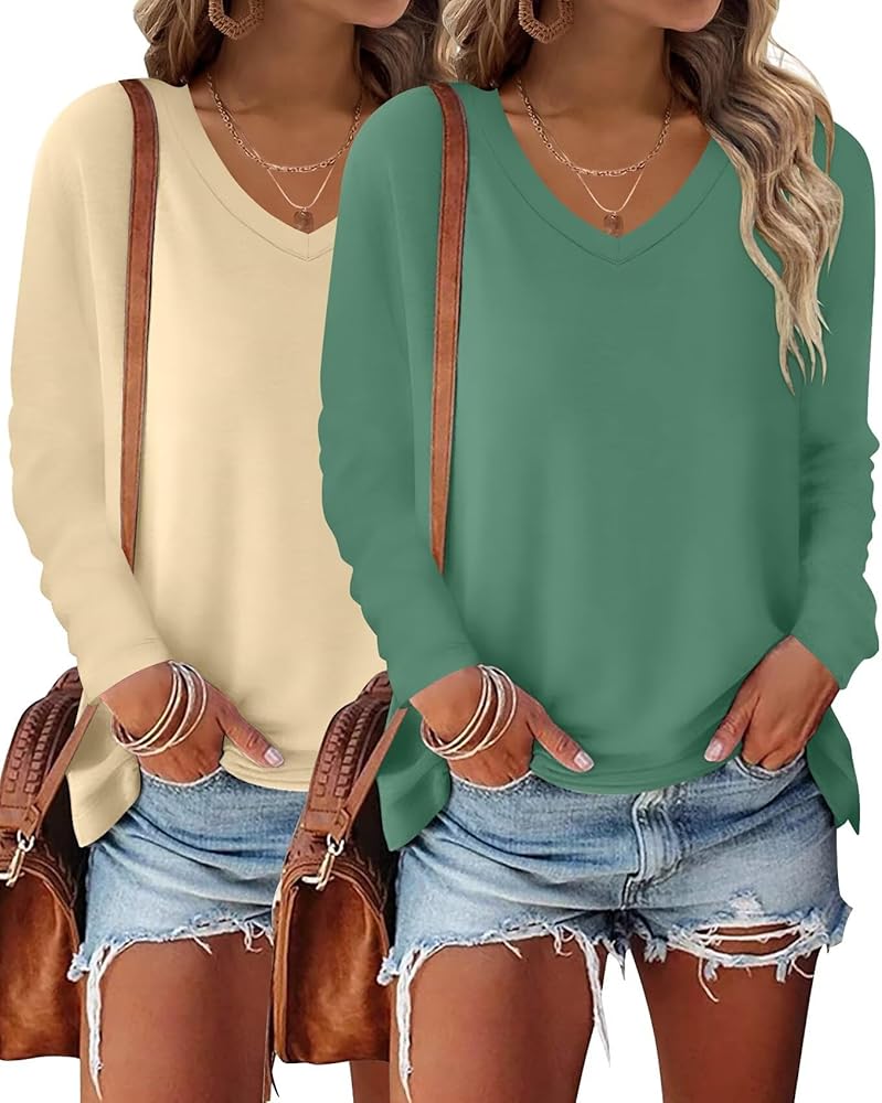 Bliwov 2 Pack Womens Long Sleeve V Neck Tops Fall Winter Outfits Spring Trendy T Shirts 2026 Casual Fashion Clothes