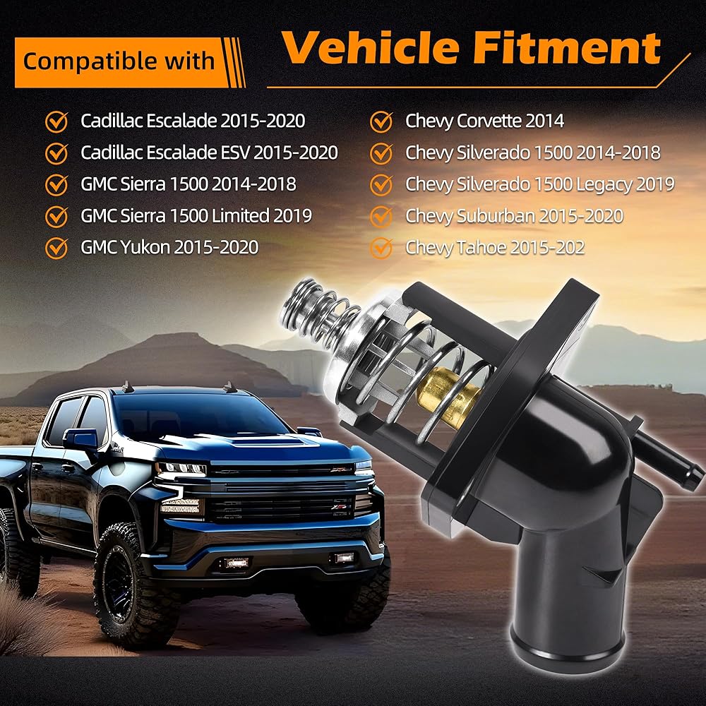 15-11125 مجموعة مبيت ترموستات تبريد المحرك متوافقة مع تشيفي سيلفرادو سوبربان تاهو كورفيت وجي إم سي سييرا يوكون وكاديلاك إسكاليد 2014-2020 لاستبدال 15-11125 902-2090 12674639