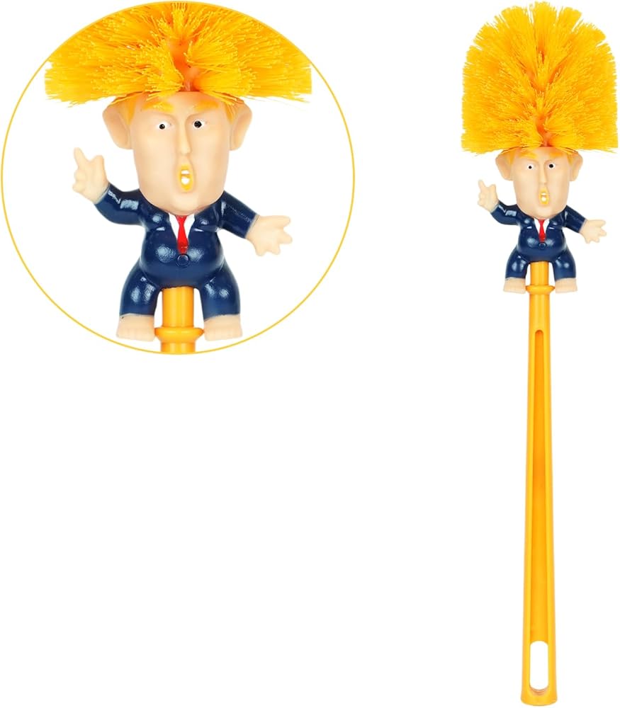 This 2-pack of Trump-themed toilet brushes turns a boring cleaning task into a hilarious event. The iconic golden hair and caricature design instantly become a conversation starter, bringing humor to your bathroom while delivering a powerful clean. Whether you're looking to upgrade your bathroom cleaning routine or searching for a laugh-out-loud gift, our Trump Toilet Brush Set is the perfect choice.