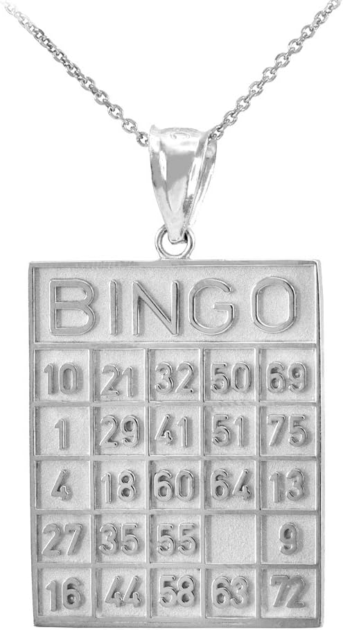Wear this good luck charm pendant necklace depicting an bingo playing card for a chance to win on different randomly drawn numbers.