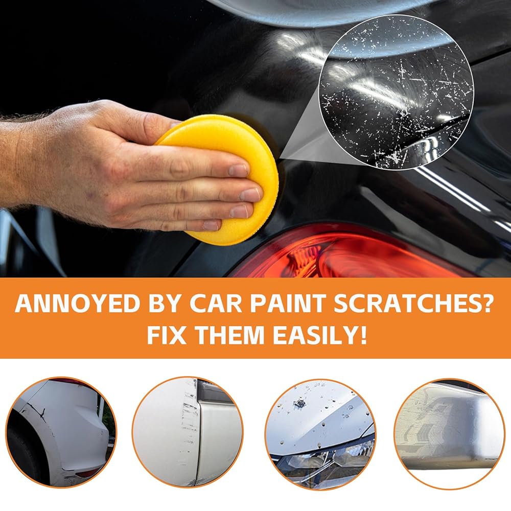 تركيبة تلميع لطيفة وملء عميق: مصنوع من جزيئات تلميع فائقة الدقة وعوامل حشو ممتازة، يعمل مزيل خدوش السيارة ثنائي المفعول هذا بأمان على إصلاح الخدوش الخفيفة إلى المتوسطة والدوامات والكشوط دون الإضرار بطبقة الطلاء الأصلية لسيارتك. تضمن إسفنجات التلميع الناعمة والمناديل المبللة الخالية من الوبر استخدامًا سلسًا ومتساويًا للحصول على لمسة نهائية احترافية خالية من العيوب