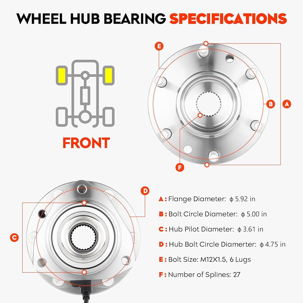 المعلمة: استبدال 513188؛ المحور الأمامي؛ حجم الترباس: M12X1.5 6 العروة. مع نظام ABS. عدد الخطوط: 27 ؛ قطر الحافة: 5.9 بوصة