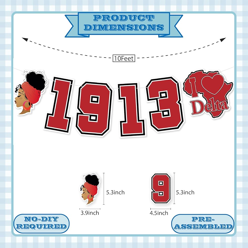 • 【PERFECT FOR 1913 DELTA SORORITY】: The colorful banner is specially designed with a variety elements that will perfect for celebrating your special 1913 DELTA SORORITY and add funny atmosphere for your party decorations.