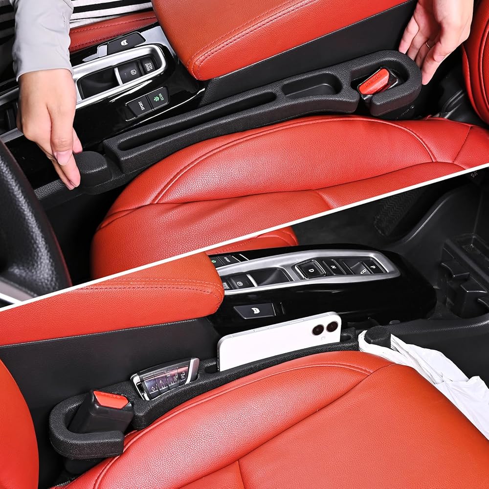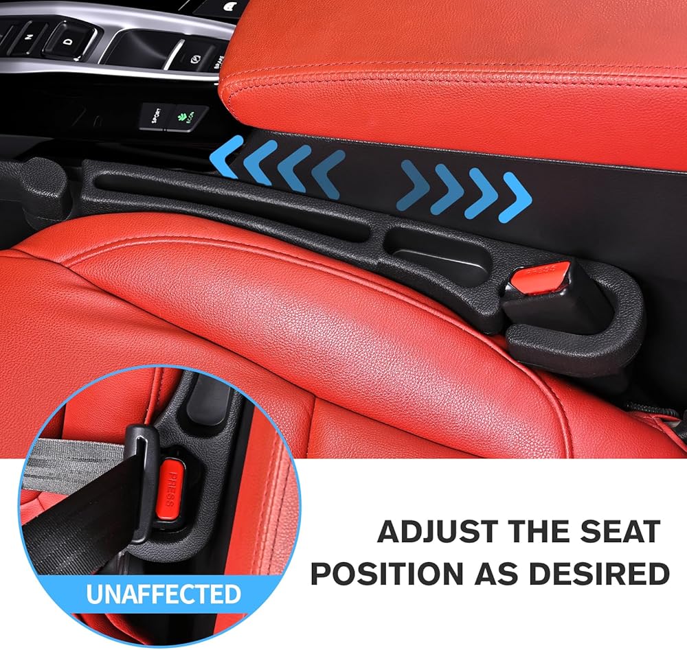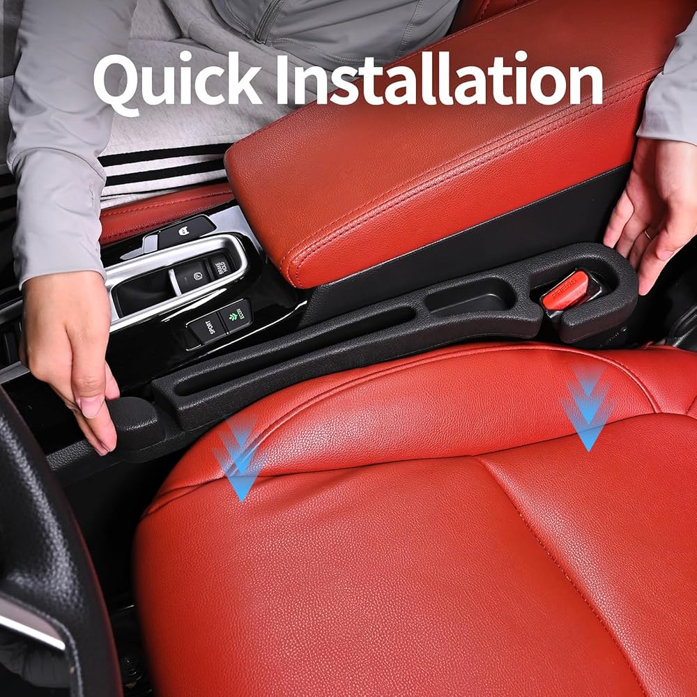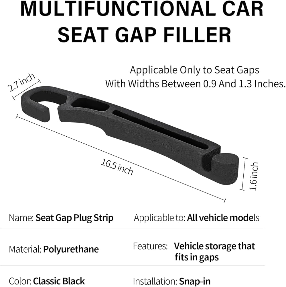 Applicable Models: Our seat gap filler need to be placed between the seat and the center console, if the center console is lower than the seat can not be used, and is suitable for gaps larger than 0.9 inch less than 1.3 inch, suitable for all kinds of cars, SUVs, trucks to meet the conditions High-Quality Material: Car seat side gap filler is made of high-quality EVA, with a certain degree of hardness and at the same time there is some softness, which can adapt to more gaps, and the surface of this material is smooth, wear-resistant, waterproof, and can meet a variety of needs Unique design: Our car gap seat filler can prevent items from falling into the gap, in addition, you can also transform the gap space into a storage space, you can place the daily life of small objects and cell phones, cards and so on. Easy Installation: Our seat gap filler organizer are easy to install, directly place the gap strips in the gap can be, the head needs to go around the seat belt buckle, note: need to distinguish between the driver's seat and the passenger seat, our products have a pair of products, the installation can be moved with the seat, no need to re-installation