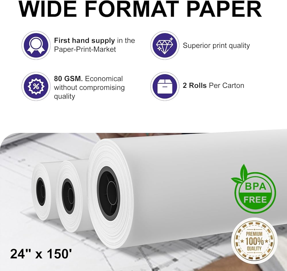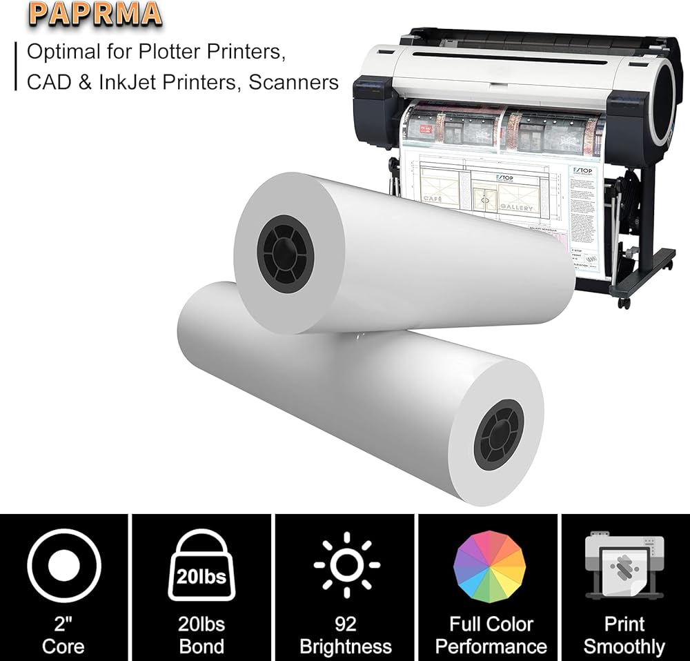 - لفة ورق ذات تنسيق عريض مقاس 24 بوصة، رائعة كورق الراسمة، ولفافة ورق هندسي، وورق طباعة CAD، وأي مطبوعات فحص يومية ورسومات عمل، وهي مخصصة تمامًا للمخططات والخطط