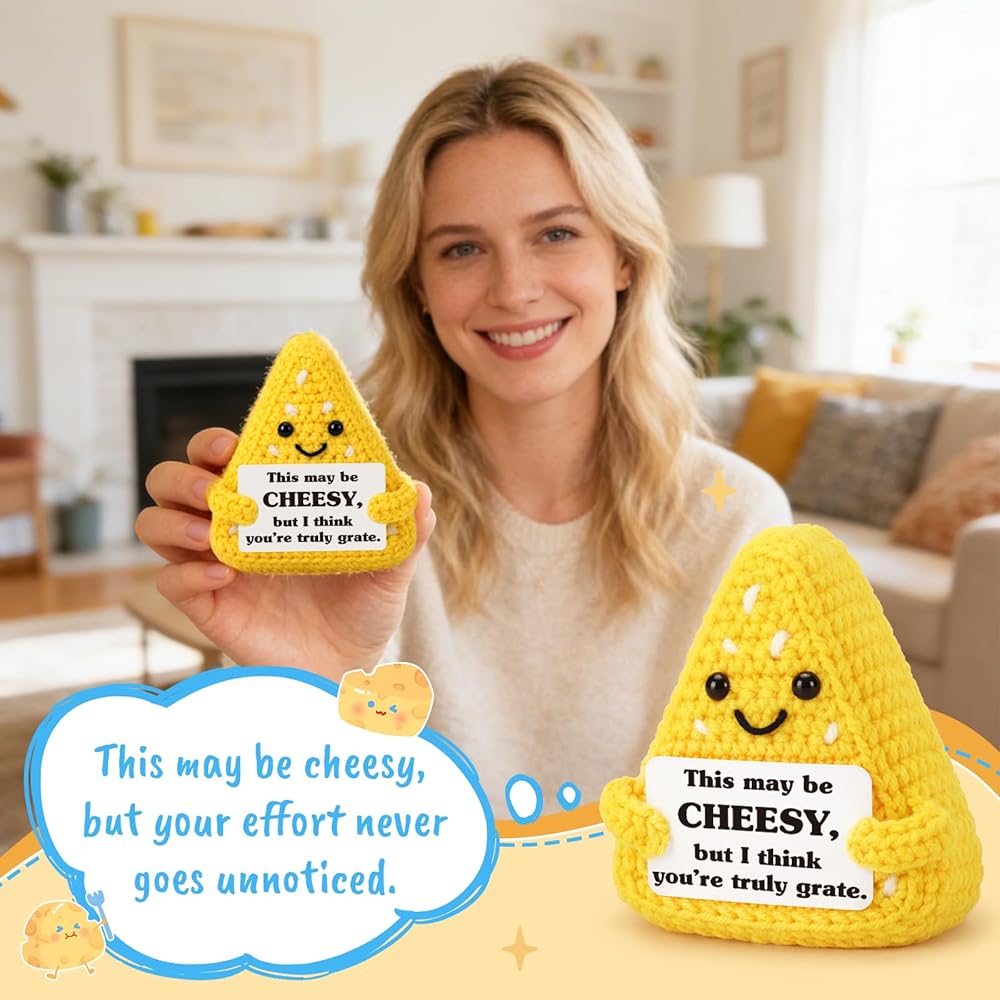 • This handmade crochet cheese provides an essential Emotional Inspirational Support boost for anyone navigating a busy workday or facing high pressure tasks helping to maintain a positive mindset while serving as a constant source of encouragement