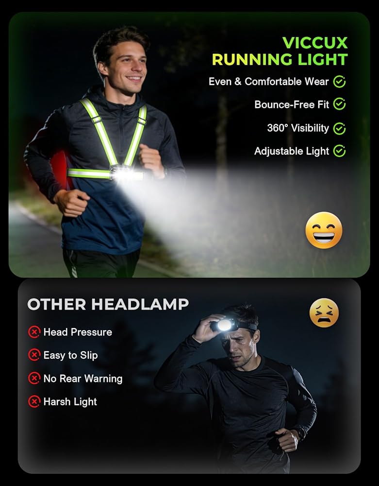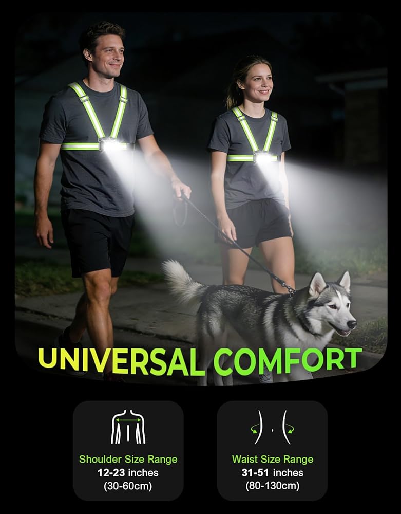 • 【راحة قابلة للتعديل وملاءمة ثابتة】 أحزمة كتف مزدوجة بعرض 1.2 بوصة توزع الوزن بالتساوي على صدرك وأكتافك - مما يقضي على الارتداد ويقلل التعب مقارنة بالمصابيح الأمامية. أحزمة مرنة قابلة للتعديل تناسب عرض الكتف من 12 بوصة إلى 23 بوصة ومقاسات الخصر من 31 بوصة إلى 51 بوصة، وتثبت بشكل مريح على السترات أو الطبقات الخفيفة. النسيج المسامي لمعدات الجري العاكسة يبقيك مرتاحًا أثناء الجري لمسافات طويلة أو التدريب.