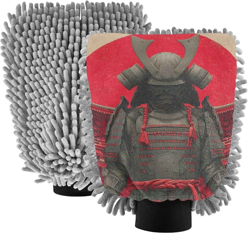 قفاز غسيل السيارات من AIXIWAWA، قفاز غسيل بطباعة الساموراي، خالٍ من الخدوش، ماص للماء، 2 عبوة متوسطة الحجم in Kuwait
