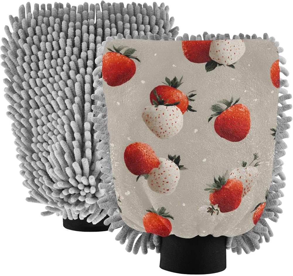 قفاز غسيل السيارات من AIXIWAWA، قفاز غسيل بطباعة الفراولة، خالٍ من الخدوش، ماص للماء، 2 عبوة كبيرة in Kuwait