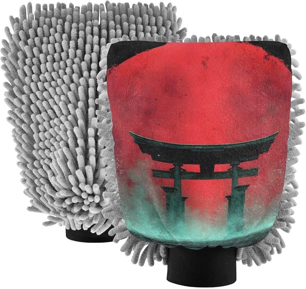 قفاز غسيل السيارات من AIXIWAWA، قفاز غسيل بطباعة البوابة اليابانية، خالٍ من الخدوش، ماص للماء، 2 عبوة متوسطة الحجم
