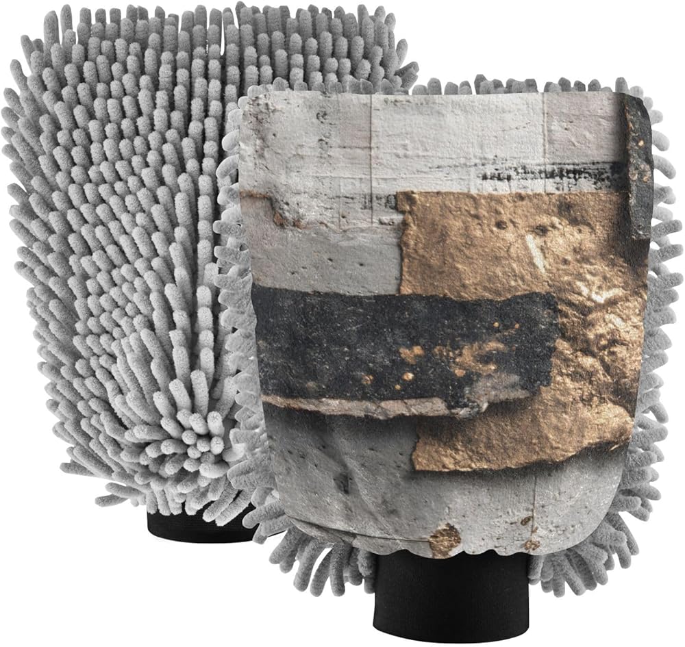 قفاز غسيل السيارات من AIXIWAWA، قفاز غسيل فاخر بطباعة الصخور، خالٍ من الخدوش، ماص للماء، 2 عبوة متوسطة الحجم