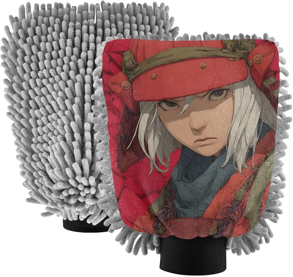 قفاز غسيل السيارات من AIXIWAWA، قفاز غسيل بطباعة الساموراي اليابانية خالية من الخدوش وماصة للماء، عبوة من قطعتين متوسطة الحجم in Kuwait