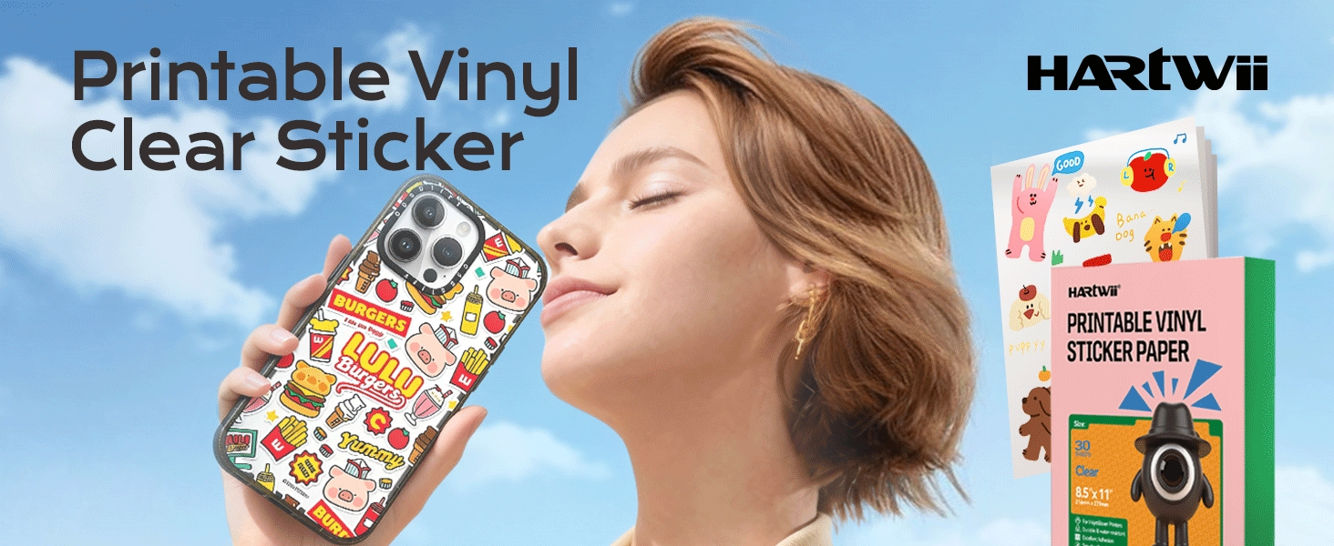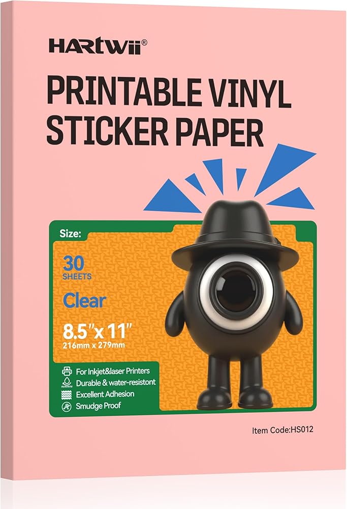 ورق ملصقات من الفينيل الشفاف بنسبة 100%، 30 حزمة، أوراق ملصقات شفافة قابلة للطباعة مقاس 8.5 × 11 بوصة للطابعة النافثة للحبر، سريعة الجفاف، ألوان زاهية، مقاومة للتمزق - مثالية للحرف اليدوية وآلات القطع