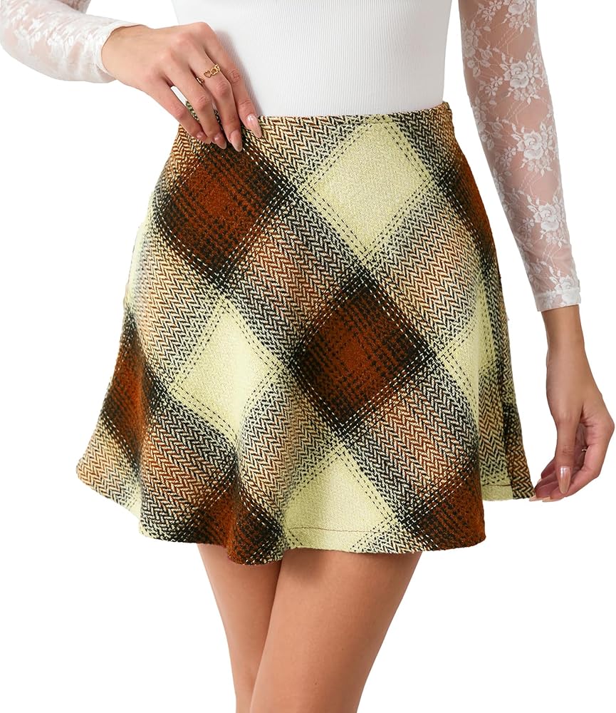 • Mini Skirt Features: High waist, elegent plaid, elastic Waistband, side invisible zipper fly closure, mini length.
