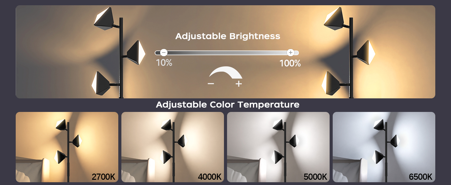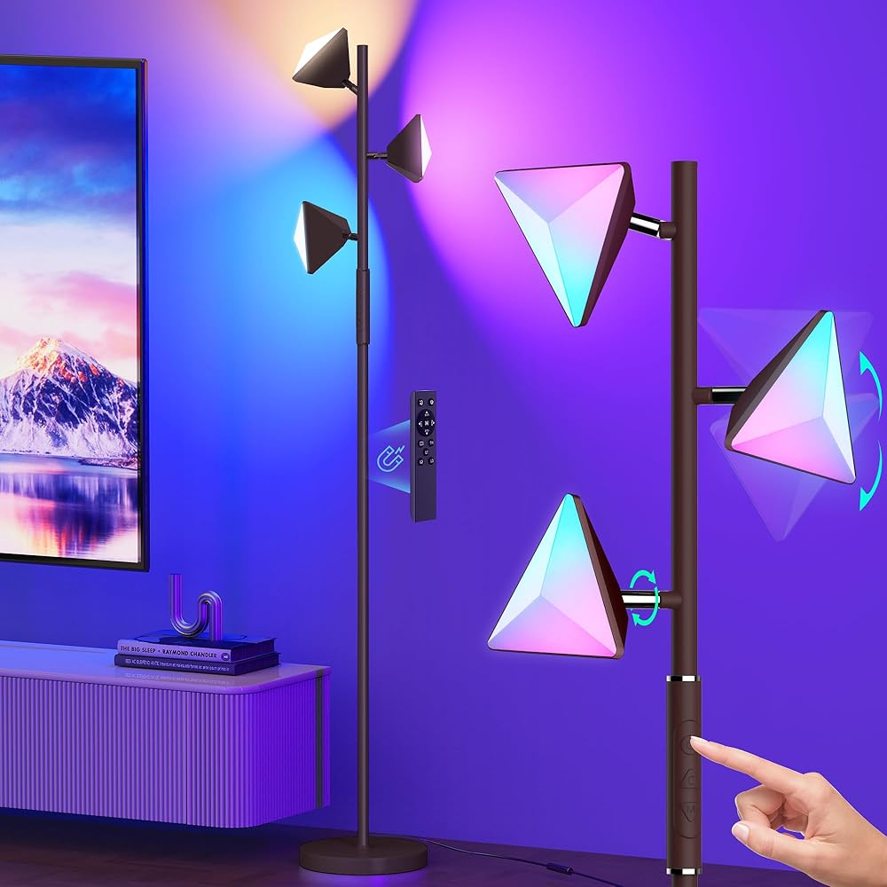 • إضاءة ديناميكية RGB مخصصة وإضاءة بـ 4 درجات حرارة ألوان: درجات حرارة ألوان 4-CCT مدمجة (2700K-4000K-5000K-6500K) و6 ألوان متغيرة (أحمر-أزرق-أخضر-أصفر-أرجواني-أزرق فاتح) في مصباح أرضي على شكل شجرة، مما يجعلها تنبعث ضوء أبيض بارد فائق السطوع وتخلق مشاهد ملونة متغيرة الألوان، وميزانية أقل ولكن المزيد من خيارات مشاهد الإضاءة متوفرة حسب رغبتك. قم بتخصيص الجو المفضل لديك، ويمكنك التبديل حسب رغبتك وفقًا لحالتك المزاجية، وحتى ضبط سرعة تغيير اللون.
