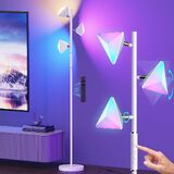 مصباح أرضي RGBCW بقدرة 36 ​​وات، مصباح أرضي على شكل شجرة LED متغير اللون، مصباح قائم طويل القامة قابل للتعتيم مع جهاز تحكم عن بعد باللمس، مصابيح أرضية حديثة 2700K-6500K لغرفة المعيشة وغرفة النوم وغرفة الألعاب - أسود in Kuwait