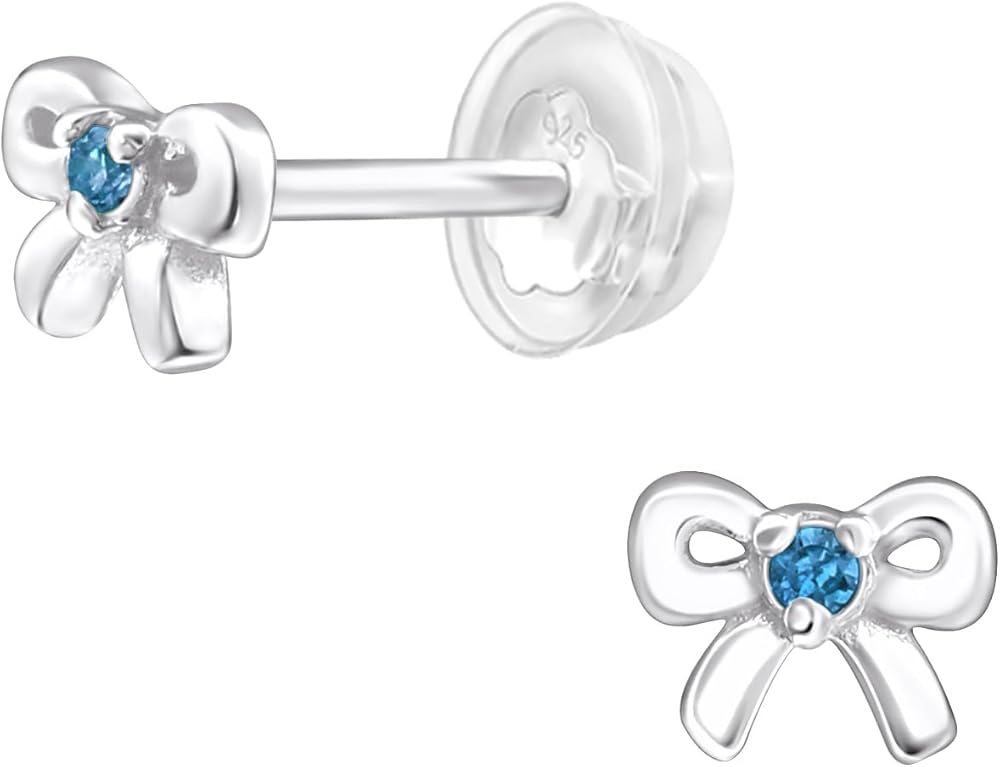 Introducing our Children's 925 Sterling Silver Hypoallergenic Earrings, designed just for your little one. These earrings combine safety, style, and comfort, making them the perfect accessory for your precious child. These earrings are crafted from 925 sterling silver, ensuring durability and a captivating shine that will capture both their imagination and yours. With their hypoallergenic properties, these earrings are gentle on delicate ears, allowing your child to wear them without any discomfort. These earrings are perfectly sized for little ears, adding a touch of fun to their outfits. Protected with an innovative E-coat, these earrings will maintain their brilliance, resist tarnish, and keep their best quality. They come in a charming box, providing a safe and special place for your child's cherished earrings. Make your little one's heart flutter with joy with our Hypoallergenic 925 Sterling Silver Children's Crystal Birthstone Bow Stud Earrings. Give them the gift of beauty, comfort, and personalized style that they will treasure for years to come.