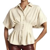 قميص نسائي كاجوال من جلد الغزال الصناعي بأكمام قصيرة، وبلوزة بأزرار سفلية، وقمصان بيبلوم in Kuwait