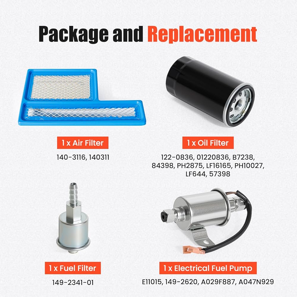 • 【Kit Contents】Includes 1 x Air Filter, 1 x Oil Filter, 1 x Fuel Filter,1 x Electrical Fuel Pump, all engineered to match Onan generator specifications. The kit provides all essential parts for a complete tune-up, reducing the need for separate purchases.