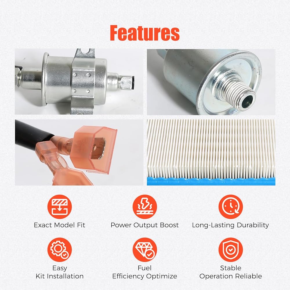 Filters feature durable construction designed to maintain structural integrity while supporting stable airflow and oil circulation. The electrical fuel pump provides consistent fuel movement within the generator system, contributing to reliable operation during varied usage durations. Each component is engineered to align with the generator's internal layout, supporting maintenance routines and long-term system stability without requiring modifications.