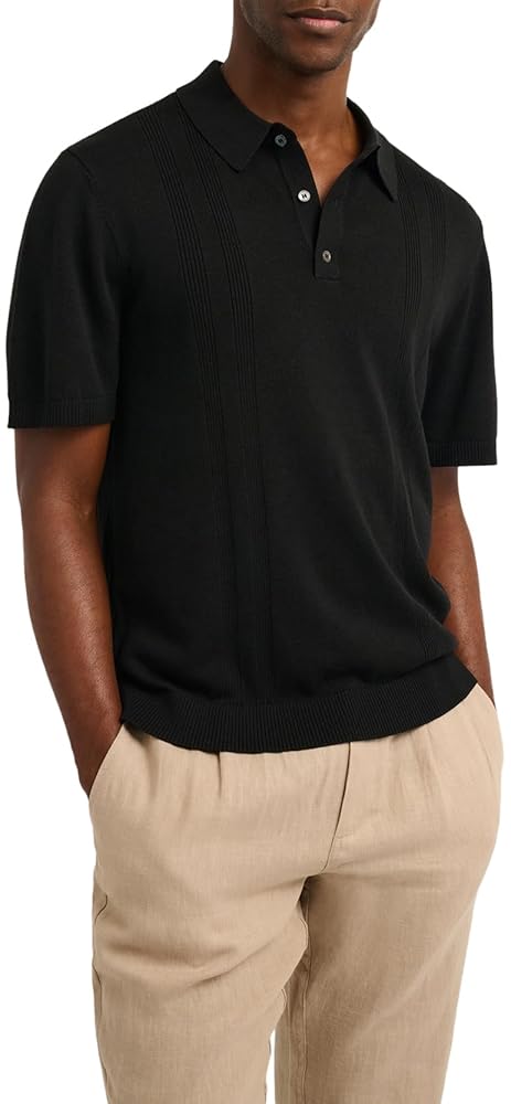 قميص بولو منسوج مضلع من الحرير Onia-Solid-Black-M