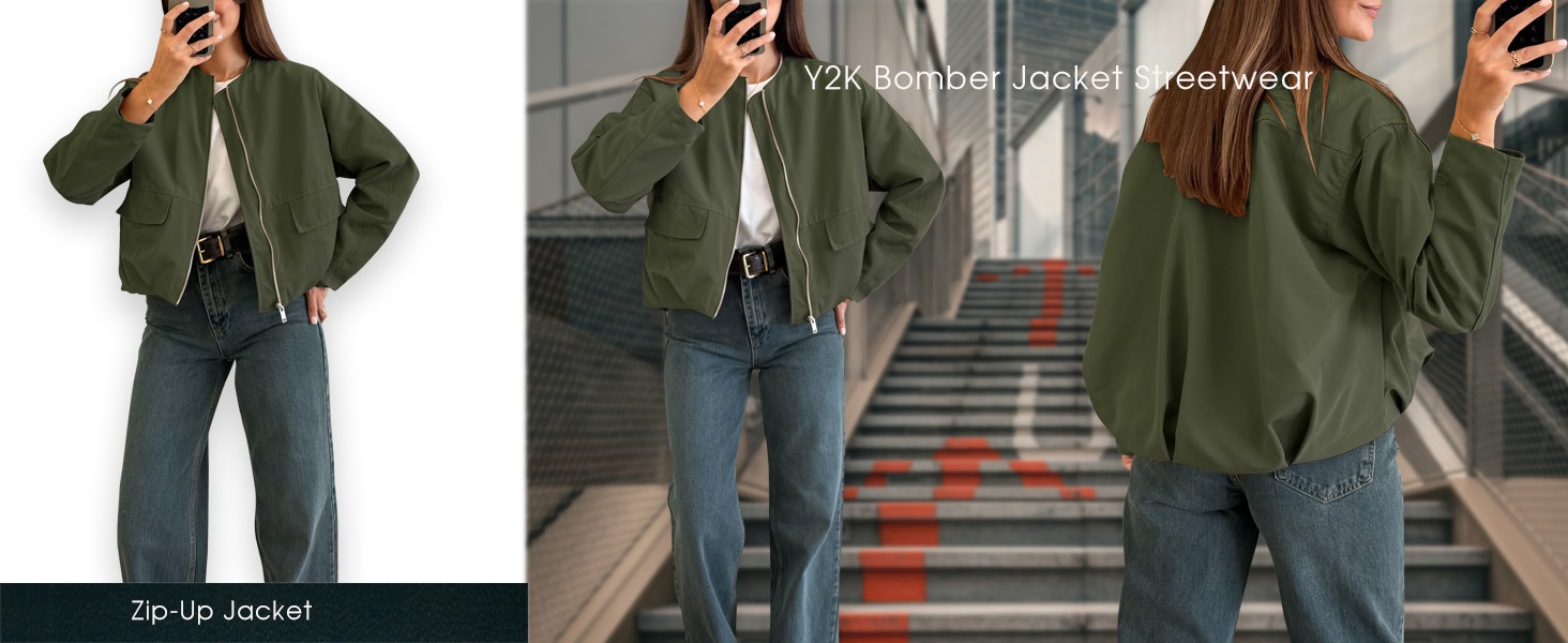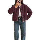 1. طراز بومبر كلاسيكي غير رسمي: صُممت هذه السترة ذات السحاب خصيصًا للنساء، وتتميز بتصميم بومبر كاجوال خالد، مثالية للارتقاء بالملابس اليومية - من الجينز إلى الفساتين.