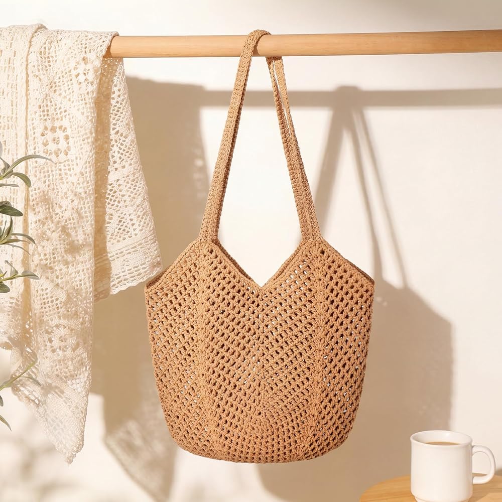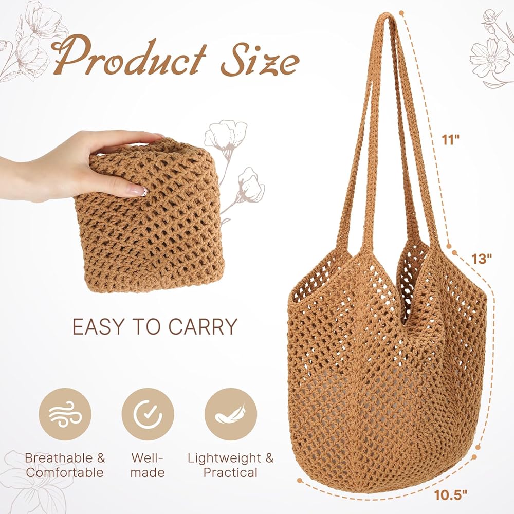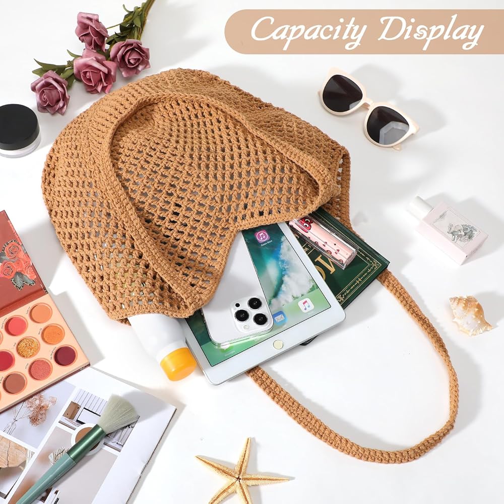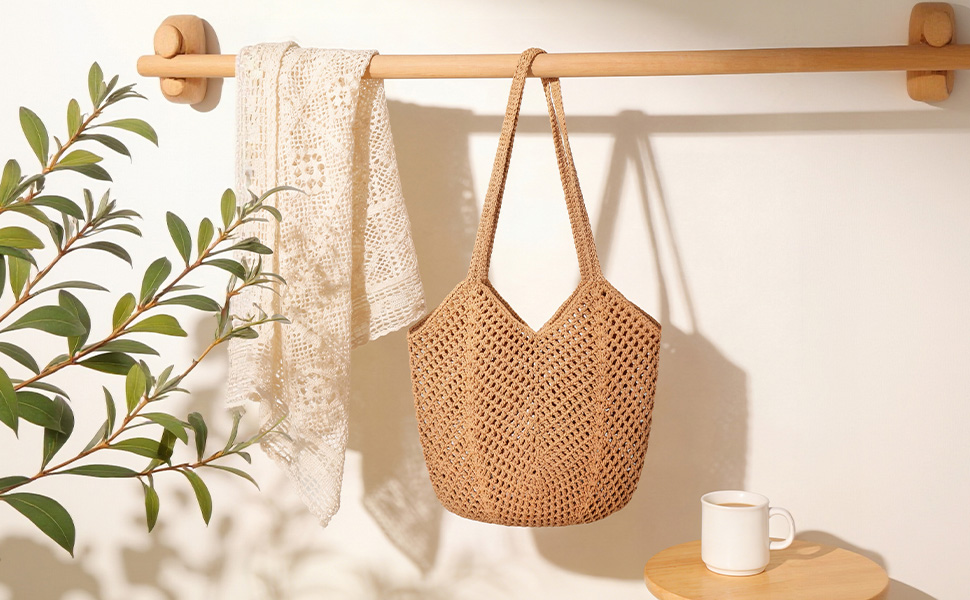 خامة ممتازة: حقيبة كروشيه مصنوعة يدويًا مصنوعة من حبل قطني للحصول على طراز بوهيمي أنيق وخفيف الوزن. وحقائب الشاطئ النسائية ناعمة وقابلة للطي لسهولة حملها. ملحق أساسي لعطلتك